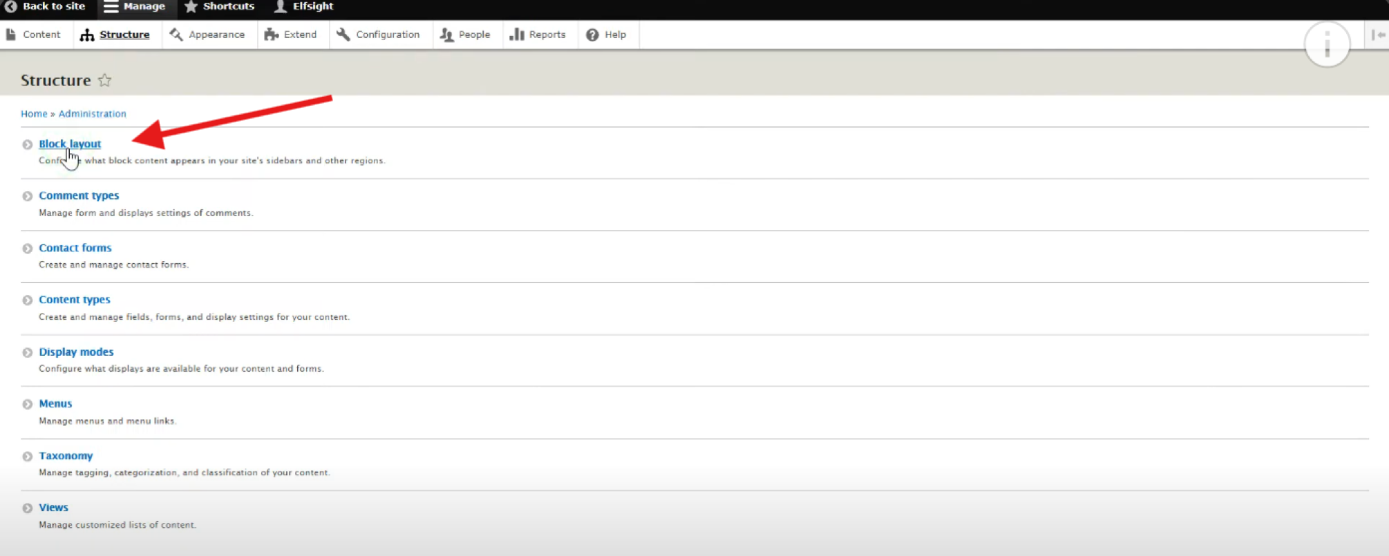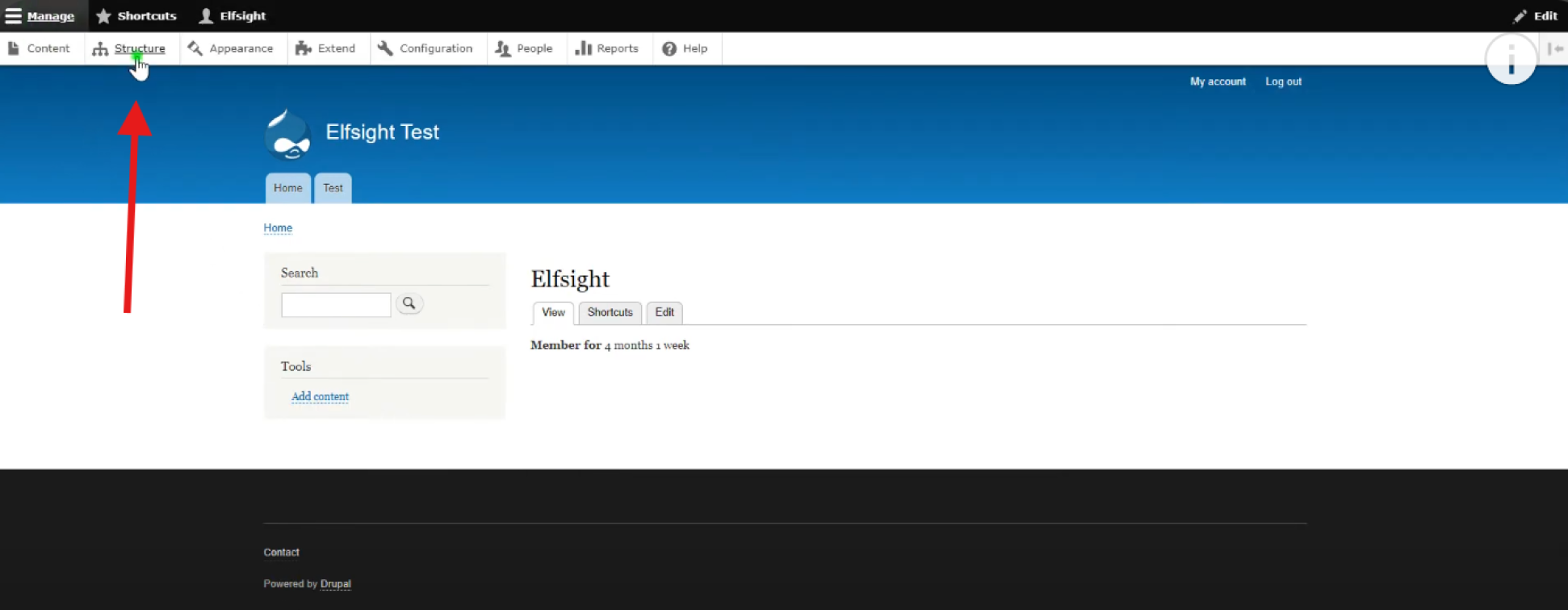 Login to your Drupal admin panel, then go to the "Structure"tab.