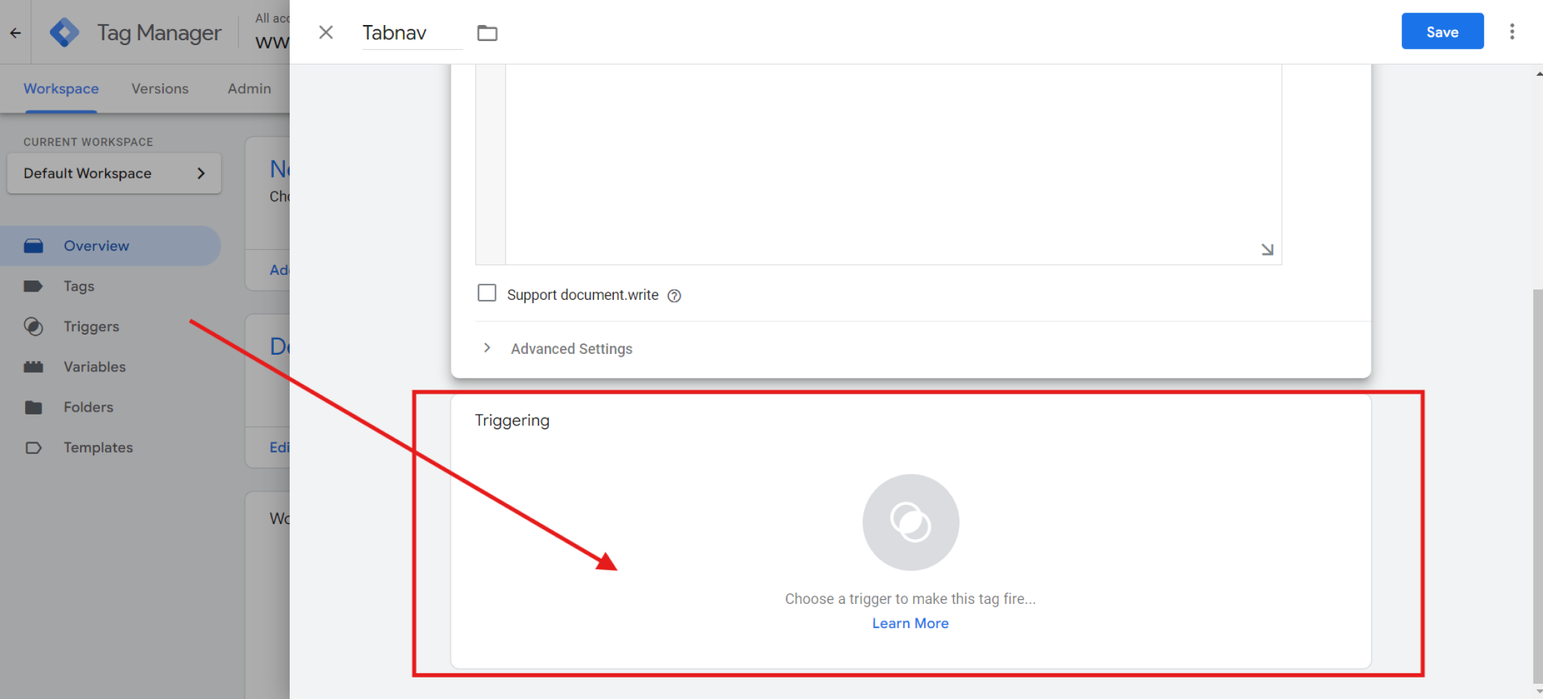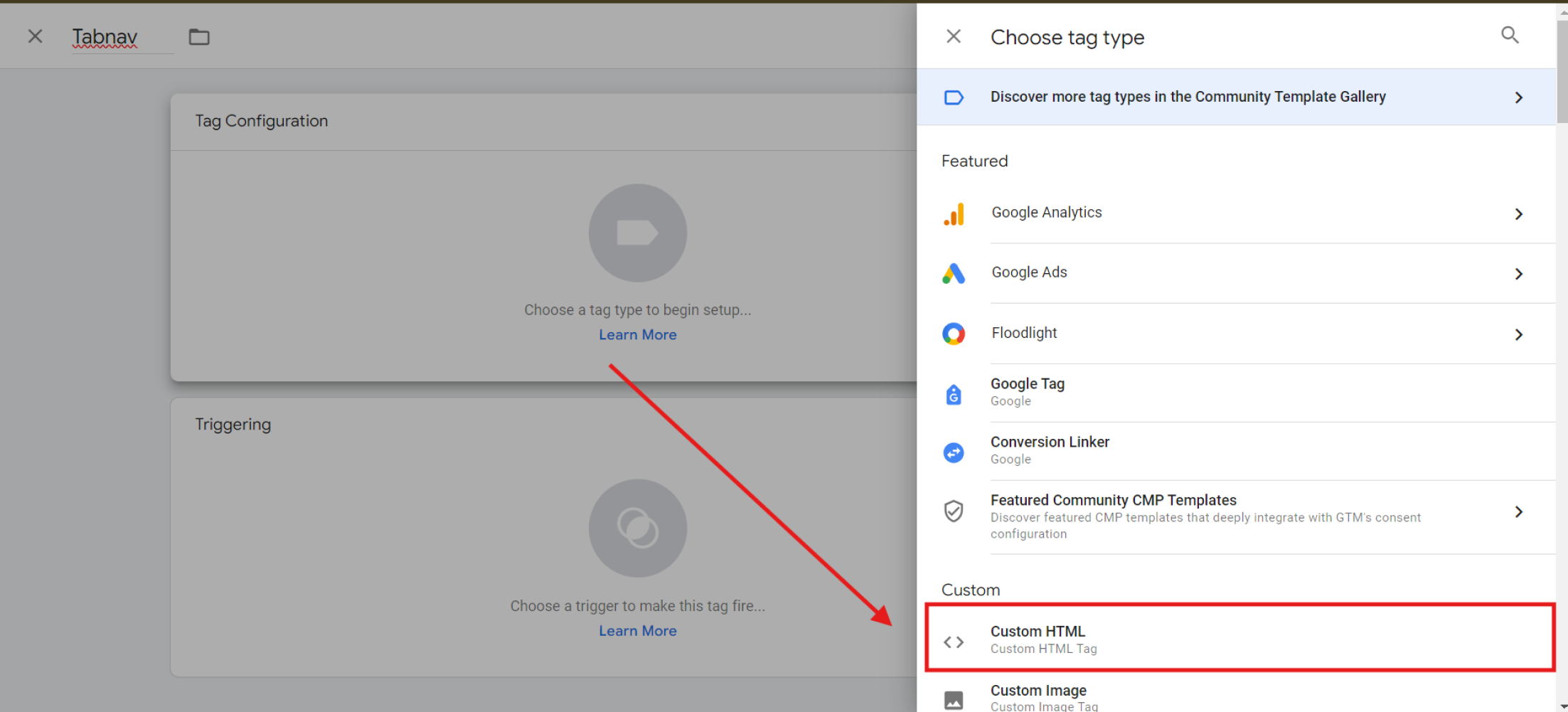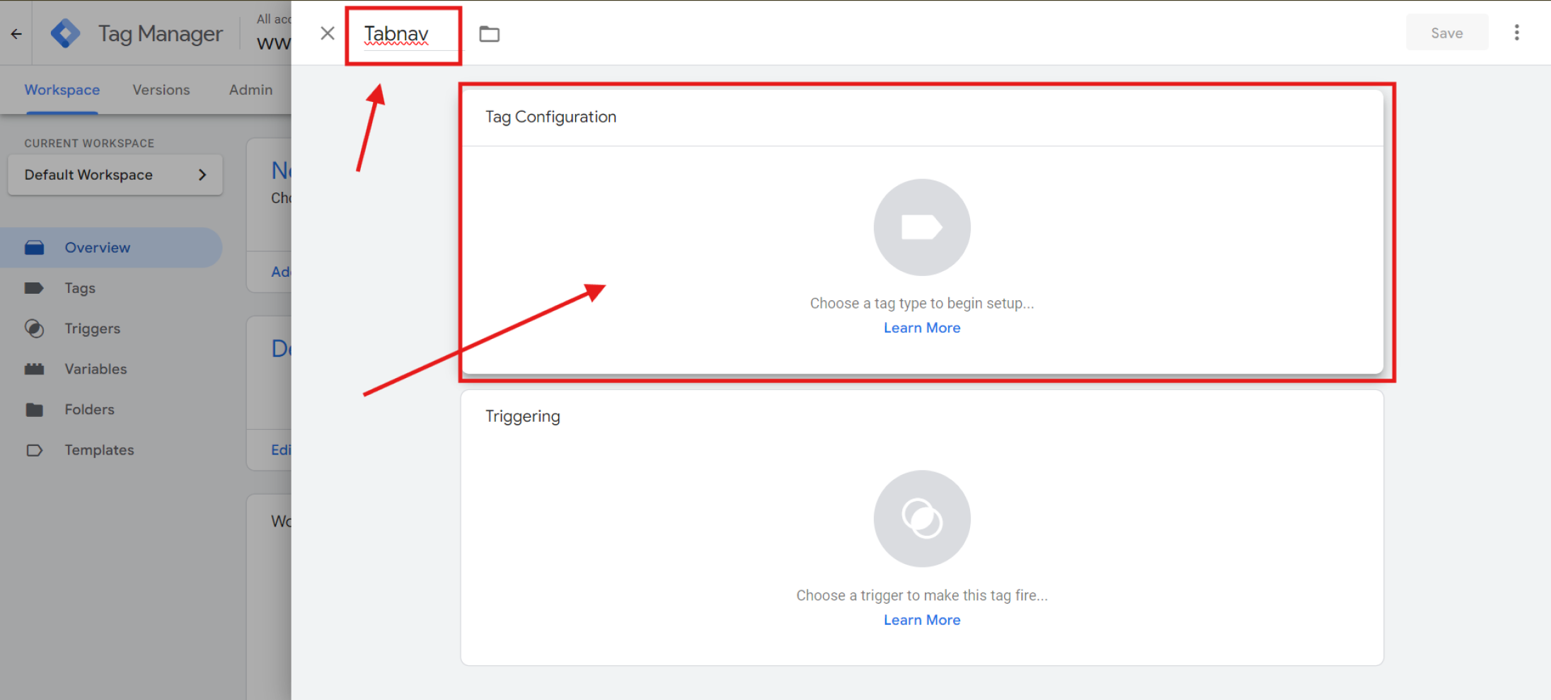 Then change the folder name to "Tabnav" and click anywhere on the "Tag Configuration" to proceed.