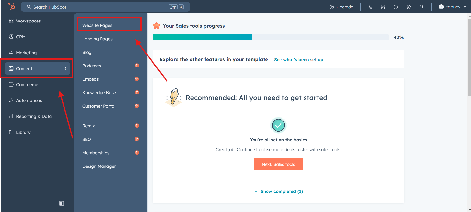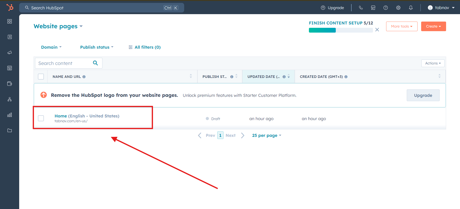 Log in to your HubSpot account, then navigate to the "Content" tab on the left-side panel. From there, proceed to "Website pages".